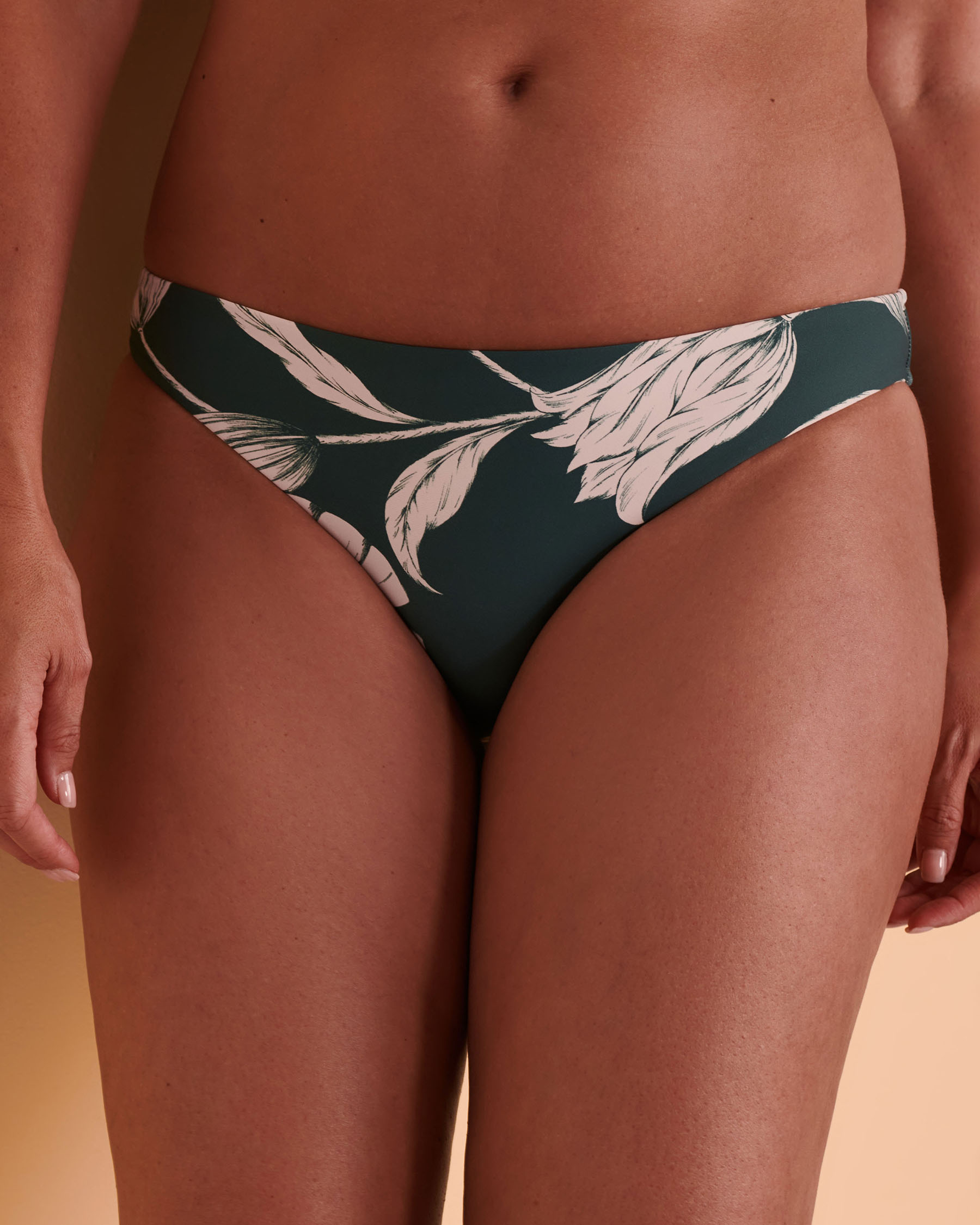 Low-rise hipster bikini bottom with allover print.