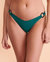 High leg bikini bottom with ring detail at sides and forest green ribbed fabric.