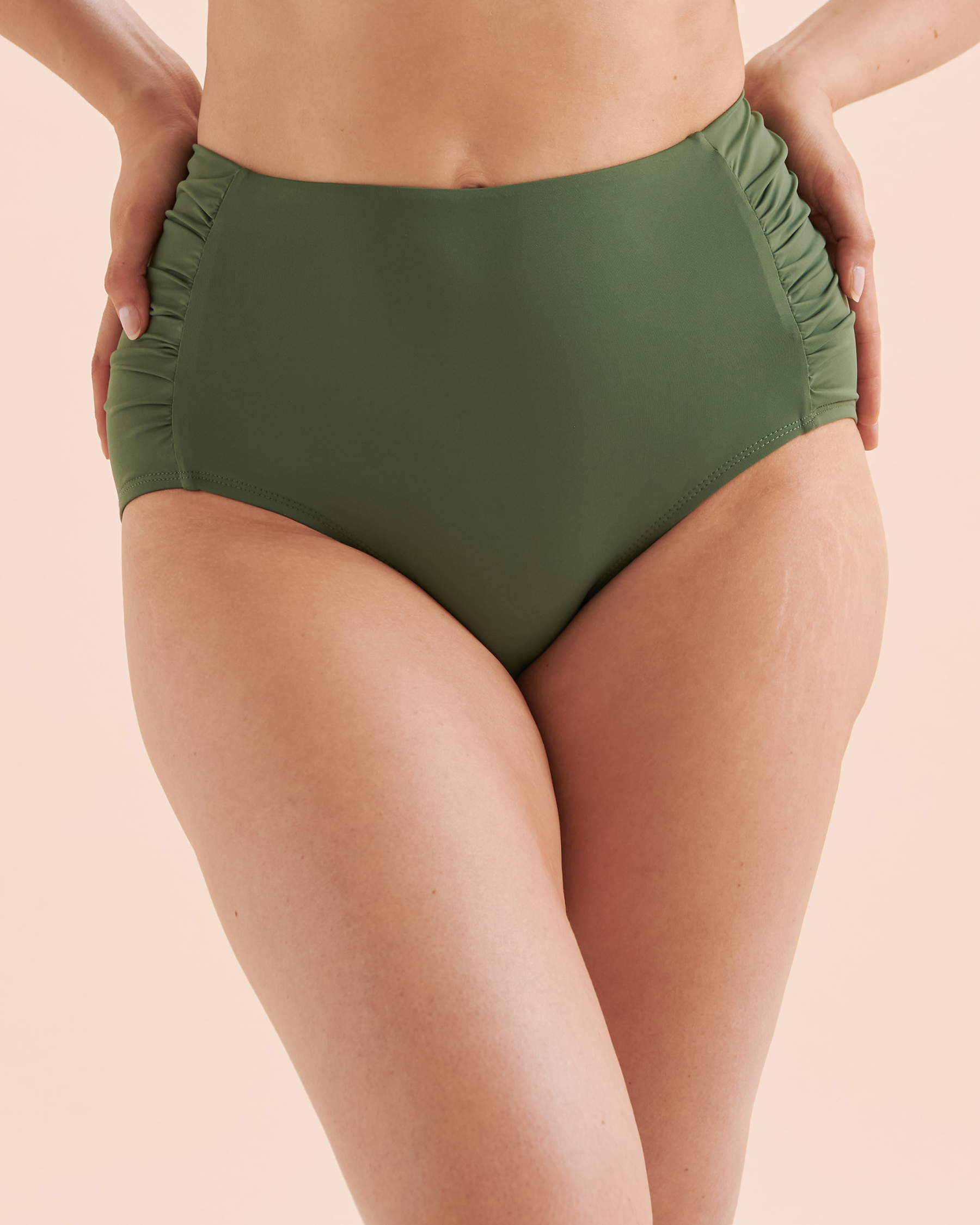 Solid Shirred Side High Waist Bikini Bottom