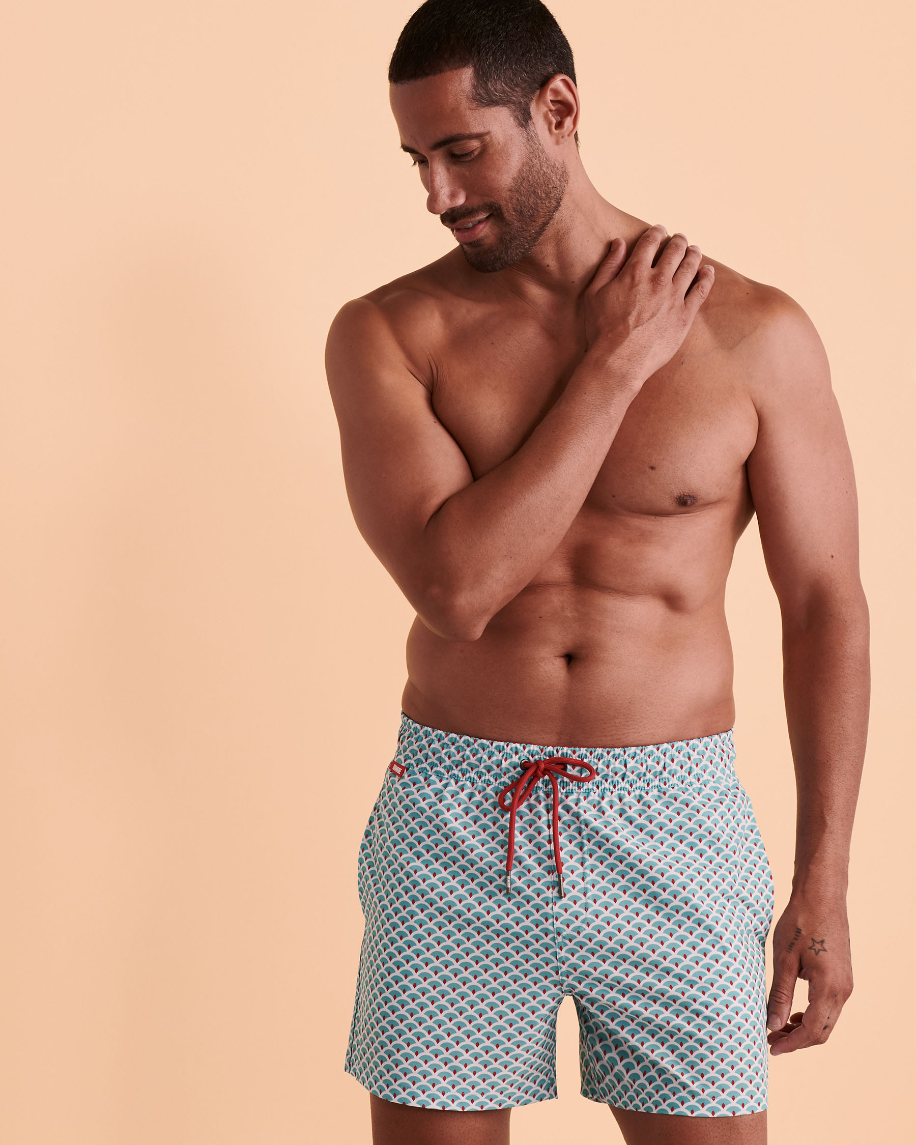 Volley swimsuit with mesh lining and side pockets.