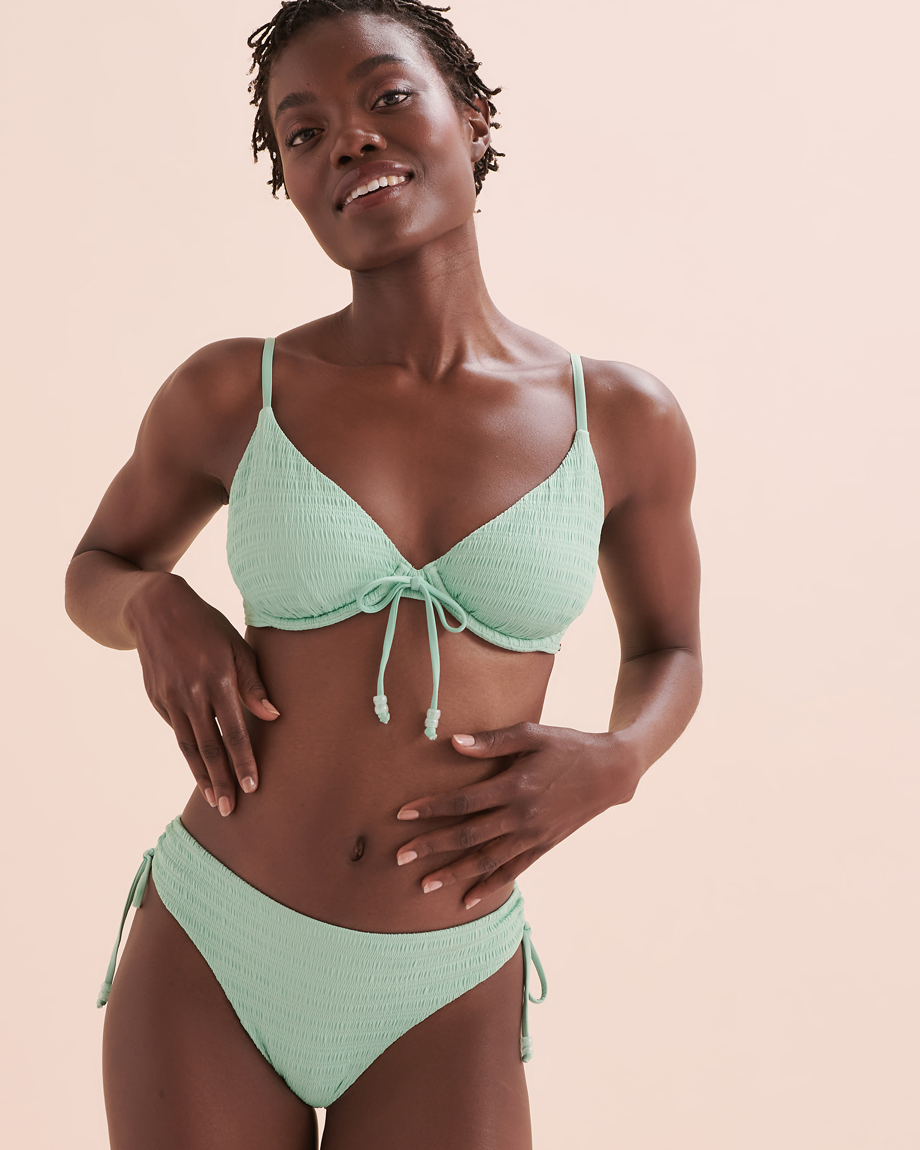 Le haut de bikini triangle Bahamas de My Bikini Story est fait pour vous! Ce haut à armature, fabriqué à partir d'un tissu texturé, a des bonnets amovibles idéals si vous cherchez un peu plus de support. Son encolure plongeant vous fera sentir confiante pour vos prochaines vacances. Complétez l'ensemble avec le nouveau bas de bikini Bahamas de My Bikini Story!