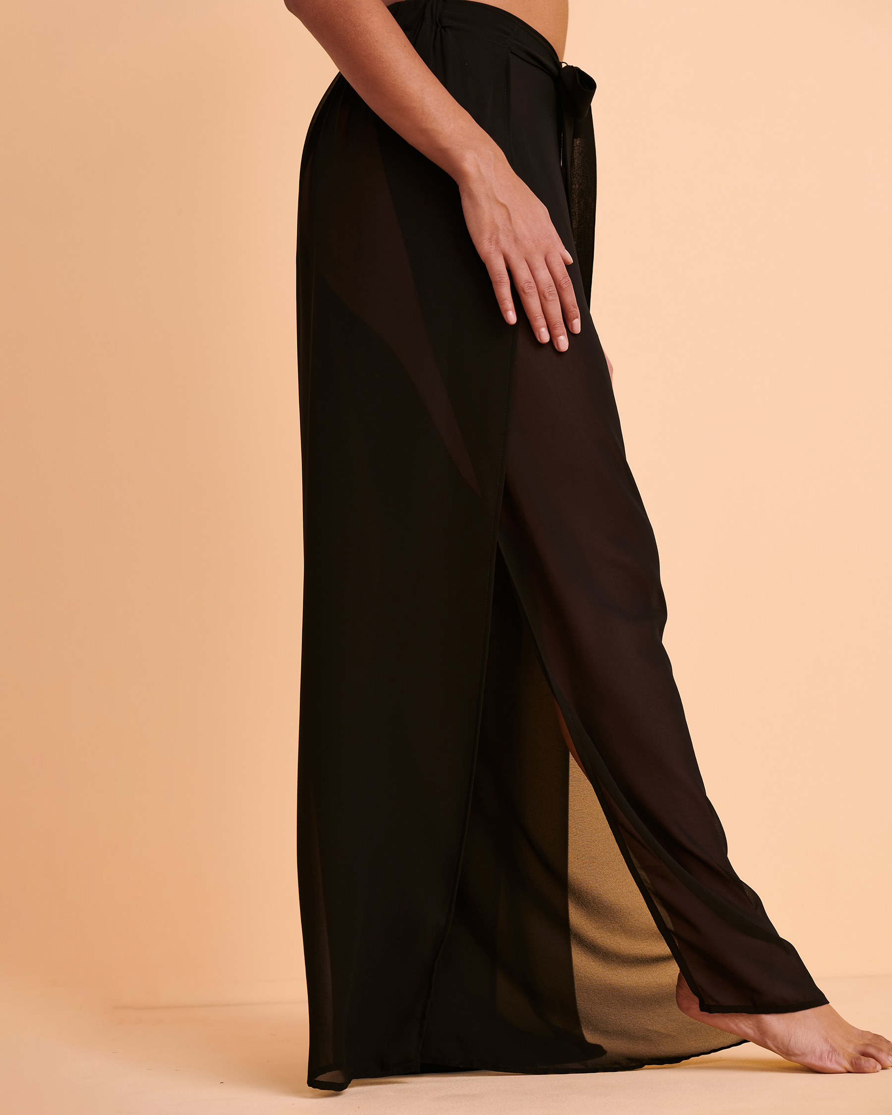 Les pantalons en chiffon noir de Santemare sont parfaits pour vous! Légèrement transparents, ces pantalons peuvent être enfilés par-dessus un maillot. Avec une ceinture ajustable à la taille, ces pantalons sont sophistiqués et confortable.