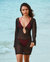 Cette robe de plage en résille fait sensation avec son décolleté plongeant et son anneau chic. Légère, aérienne, elle est faite pour vous sublimer jusqu'au coucher du soleil.